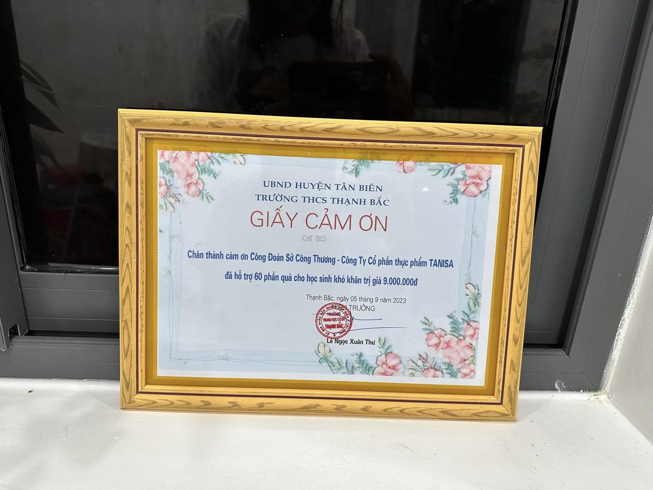 - With the cooperation between Tanisa Company and the Department of Industry and Trade of Tay Ninh province, they will strive to maintain and continue to spread care and love for the future of the students at Thanh Bac Elementary School. We hope that such actions will inspire positivity and continue to promote the development of education and society in the community, especially in difficult places like the border region of Tay Ninh, Cambodia.