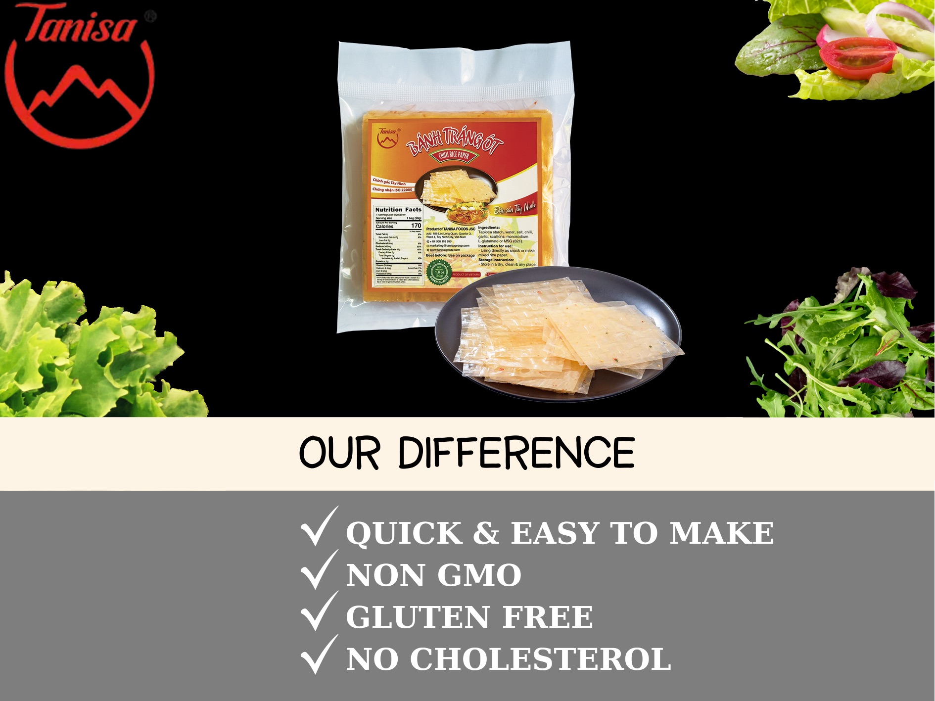 TANISA FOODS JSC, a strong brand in the market for the production and distribution of specialty products (rice paper, rice noodles...) and spices (seasoning) which exported to some countries such as USA, France, South Korea, Japan, Russia, Brunei...