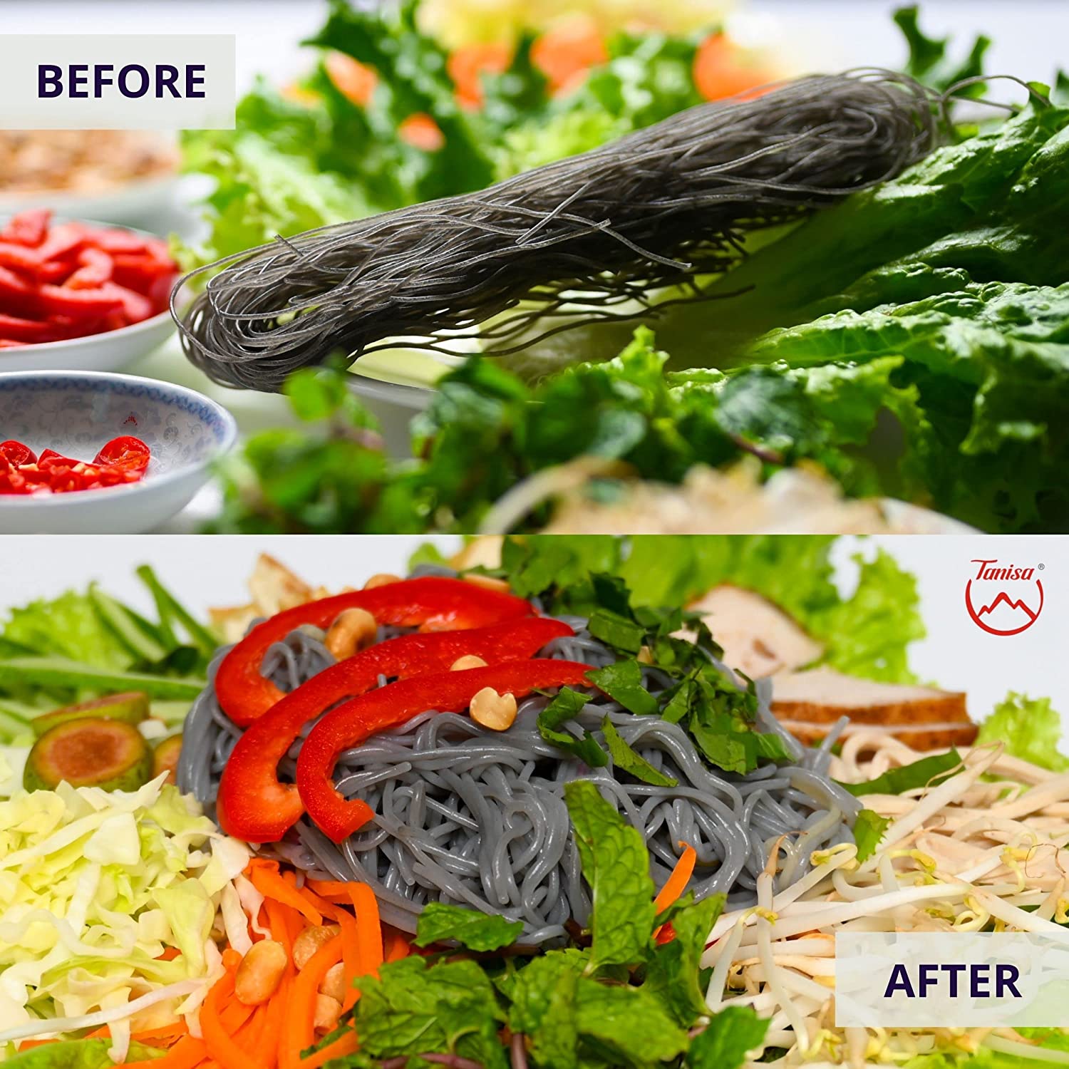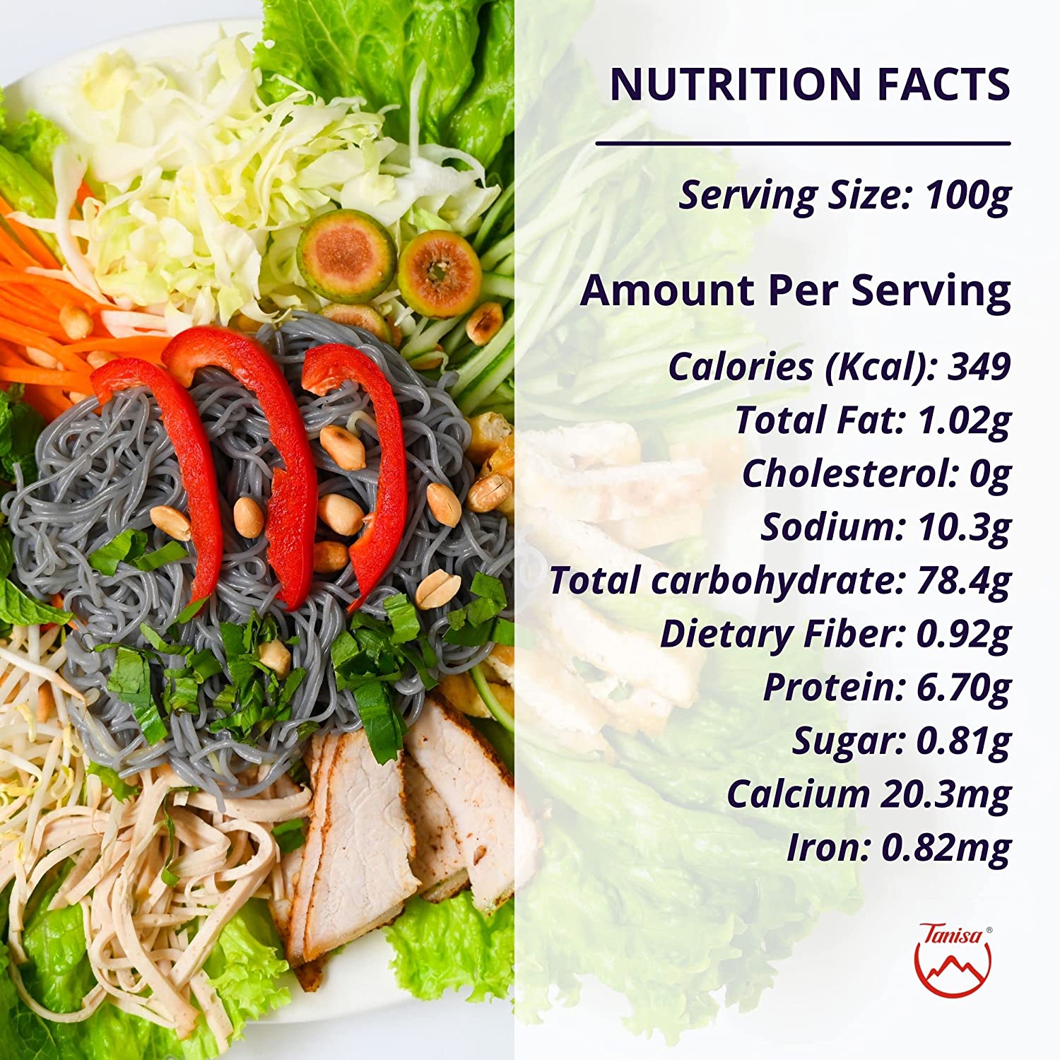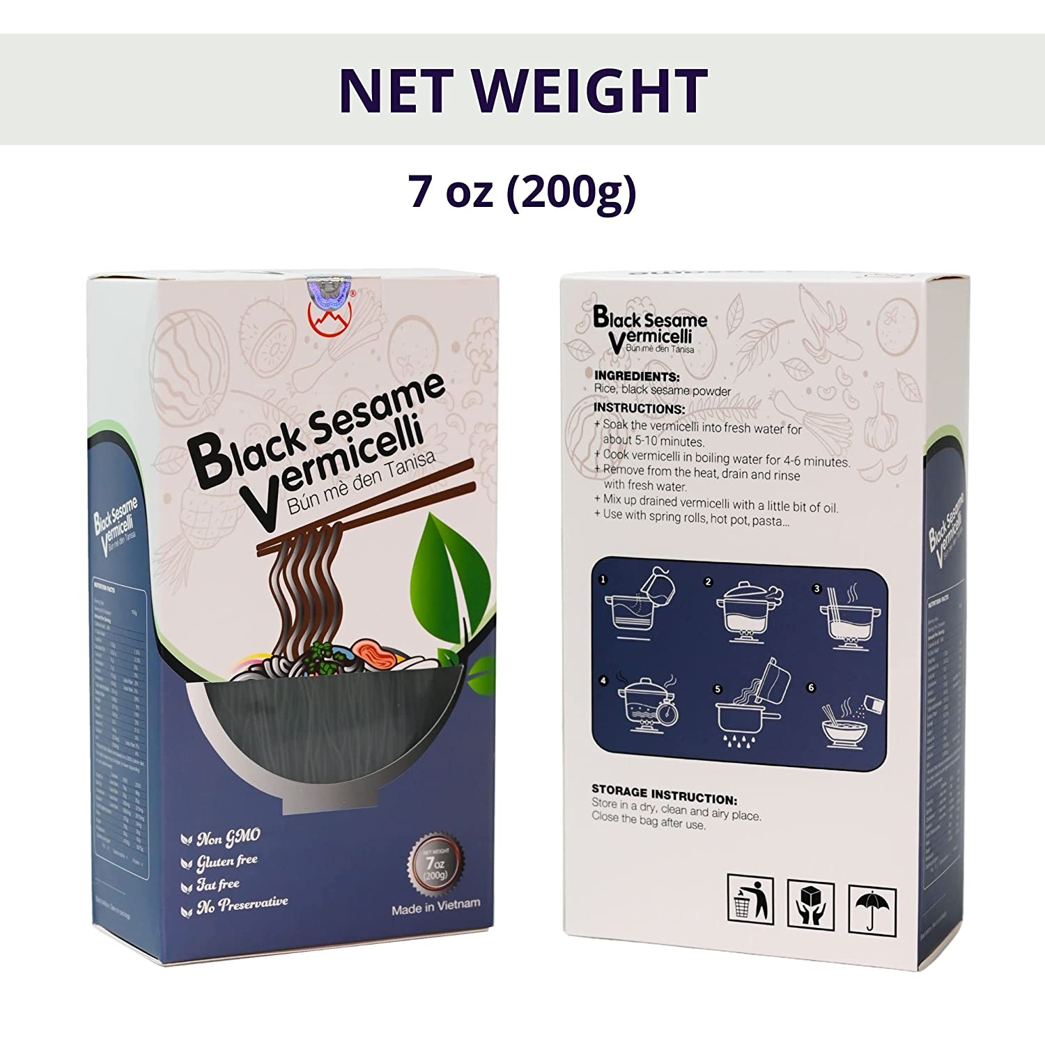 Black sesame vermicelli is a unique type of rice vermicelli made by mixing black sesame powder with rice flour. It has a slightly nutty taste and pairs well with savory or sweet sauces. At Company TANISA, we take pride in our reputation as a reliable and reputable manufacturer, supplier, and distributor of rice paper products. Our commitment to quality is unparalleled, ensuring that every sheet of rice paper that leaves our facilities is of the highest standard. And Experienced in exporting to more than 30 countries. We always source our rice from the lush fields of Vietnam, renowned for producing some of the world's finest rice varieties. With meticulous care and attention to detail, we transform this raw material into the exceptional rice paper that graces your culinary endeavors. Black sesame vermicelli caters to diverse dietary preferences, making it a popular choice among individuals with varying needs. Our commitment to crafting a product that's not only delicious but also halal and FDA-approved ensures that it's accessible and enjoyed by a global audience.