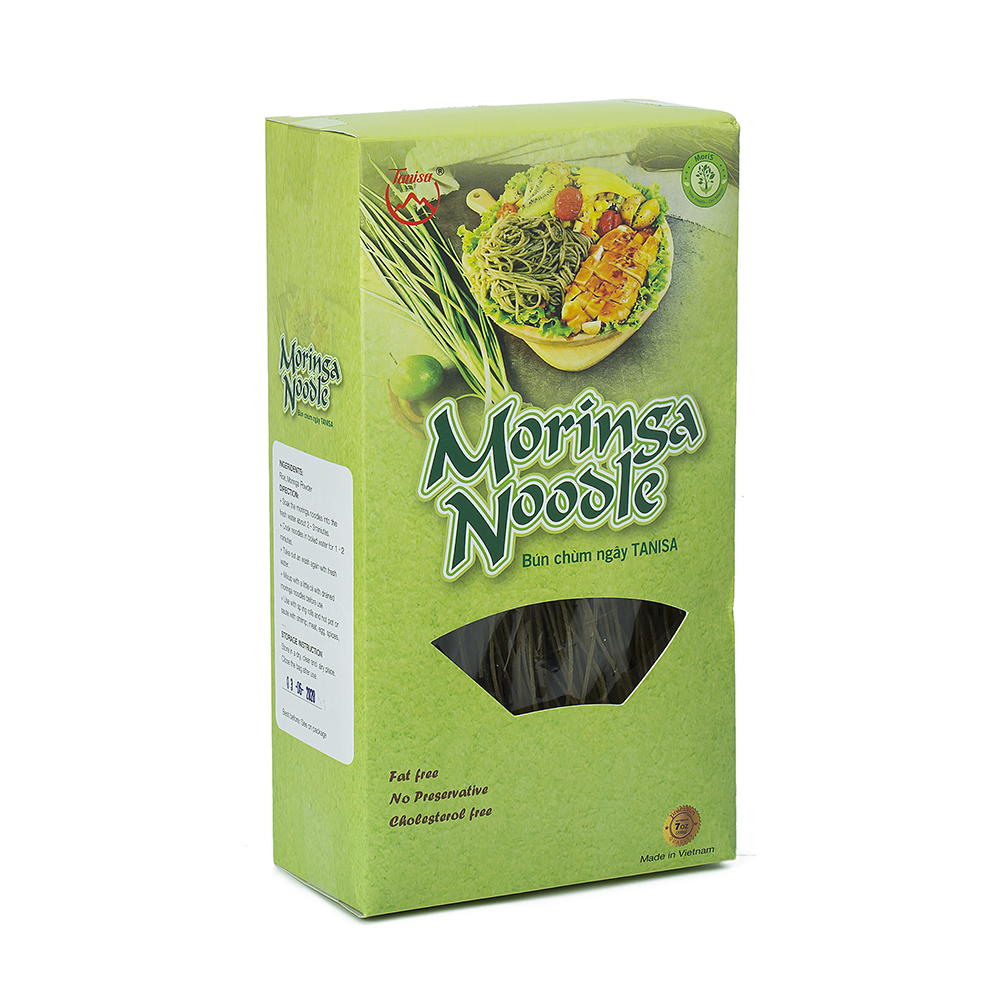 Moringa vermicelli is a superfood variation of rice vermicelli made with moringa leaf powder. Moringa leaves are known for their high nutritional value, containing vitamins and minerals such as calcium, iron, and protein. At Company TANISA, we take pride in our reputation as a reliable and reputable manufacturer, supplier, and distributor of rice paper products. Our commitment to quality is unparalleled, ensuring that every sheet of rice paper that leaves our facilities is of the highest standard. And Experienced in exporting to more than 30 countries. We always source our rice from the lush fields of Vietnam, renowned for producing some of the world's finest rice varieties. With meticulous care and attention to detail, we transform this raw material into the exceptional rice paper that graces your culinary endeavors. Moringa vermicelli caters to diverse dietary preferences, making it a popular choice among individuals with varying needs. Our commitment to crafting a product that's not only delicious but also halal and FDA-approved ensures that it's accessible and enjoyed by a global audience.