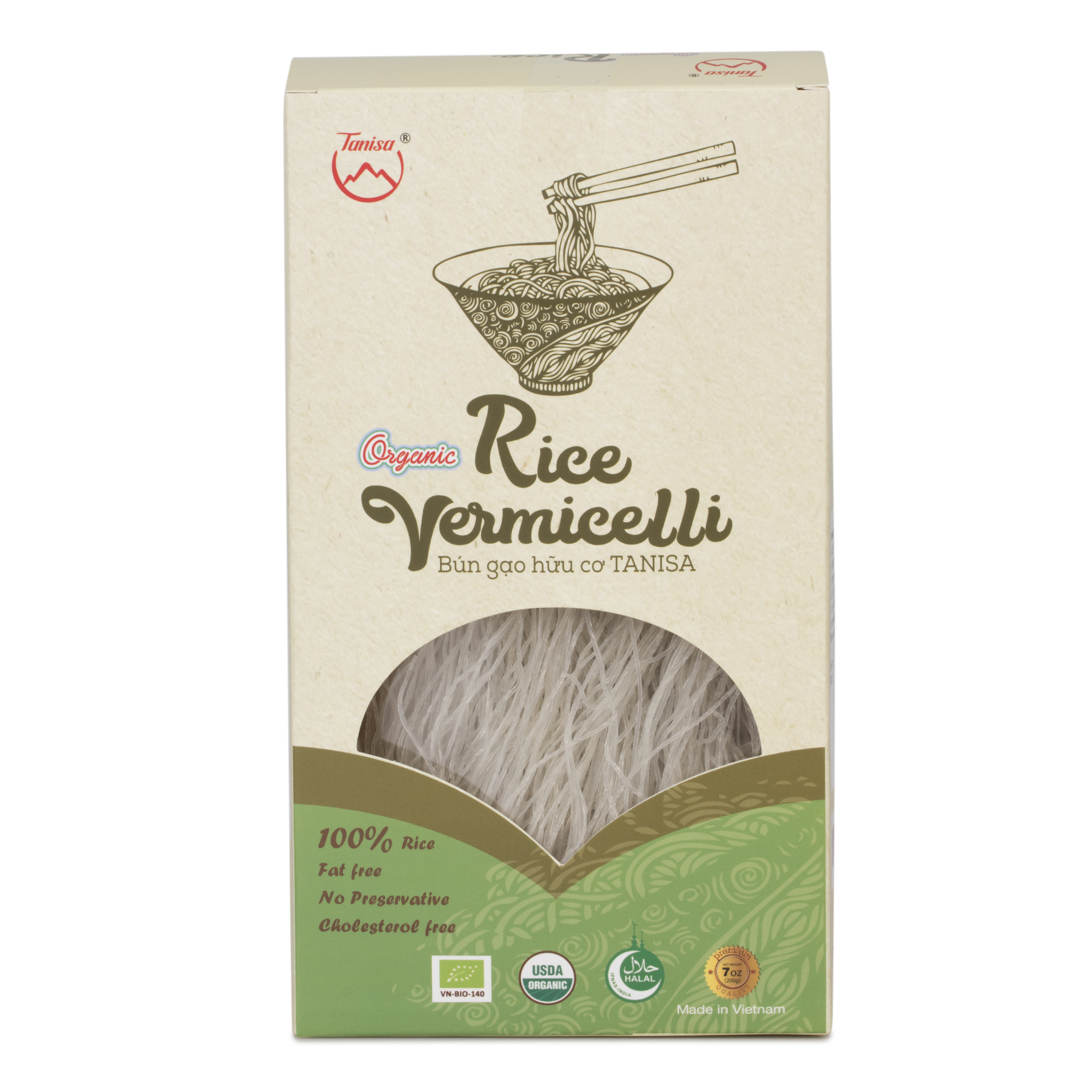 Indulge in the goodness of nature with our Organic Rice Vermicelli. Crafted from the finest organic rice, these delicate strands capture the essence of purity. Whether you're creating classic dishes or experimenting with bold flavors, our organic vermicelli promises an authentic and wholesome experience. At Company TANISA, we take pride in our reputation as a reliable and reputable manufacturer, supplier, and distributor of rice paper products. Our commitment to quality is unparalleled, ensuring that every sheet of rice paper that leaves our facilities is of the highest standard. And Experienced in exporting to more than 30 countries. We always source our rice from the lush fields of Vietnam, renowned for producing some of the world's finest rice varieties. With meticulous care and attention to detail, we transform this raw material into the exceptional rice paper that graces your culinary endeavors. Organic Rice Vermicelli caters to diverse dietary preferences, making it a popular choice among individuals with varying needs. Our commitment to crafting a product that's not only delicious but also halal and FDA-approved ensures that it's accessible and enjoyed by a global audience.