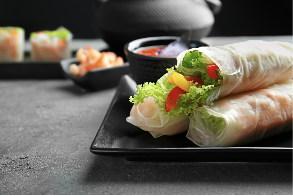 Assembling the Rolls: Place a piece of soaked and dried rice paper on a clean surface. Arrange the herbs, vegetables, and protein of your choice in the center of the rice paper. Roll the rice paper tightly, tucking in the sides as you go. Repeat this process with the remaining ingredients.